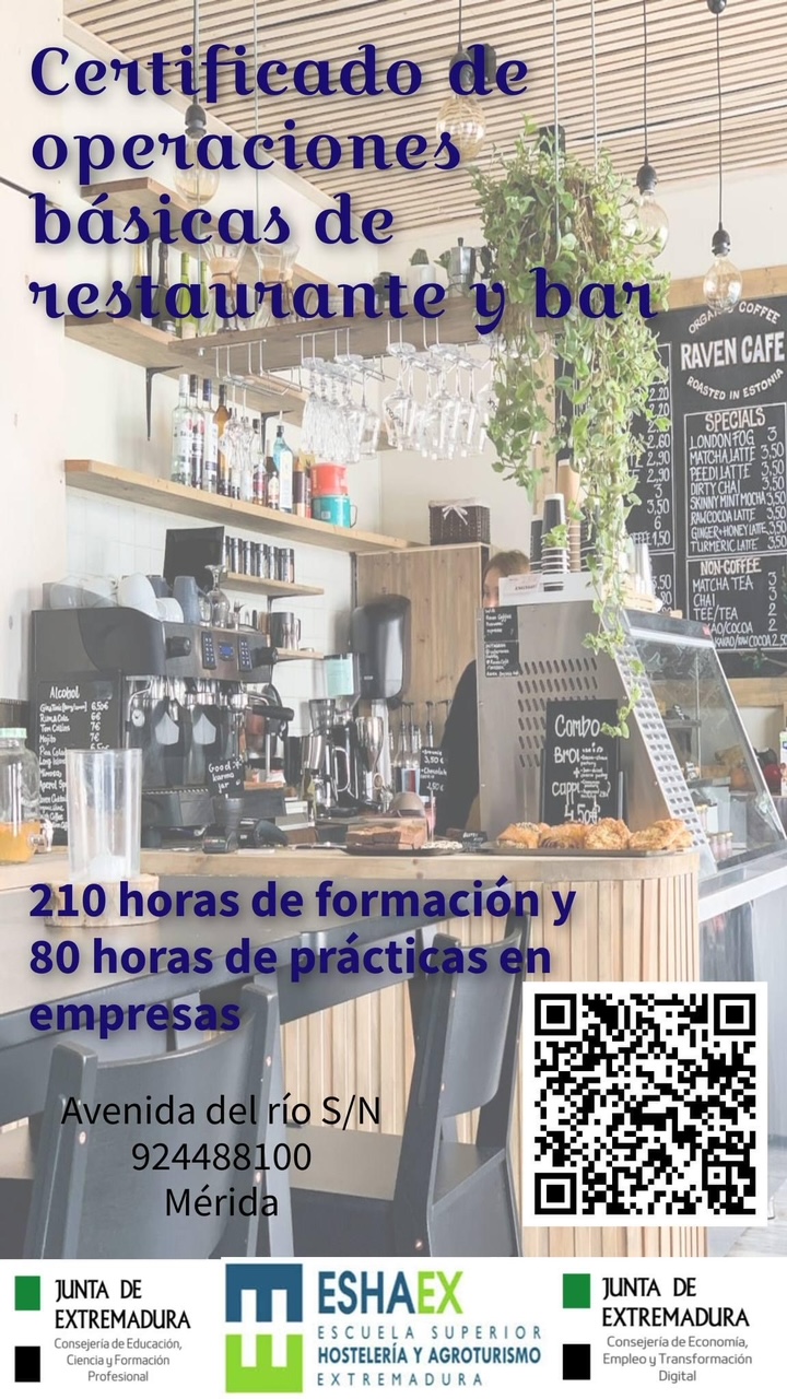En la Escuela Superior de Hostelería y Agroturismo de Extremadura se impartirán dos certificados de profesionalidad en esta modalidad:
